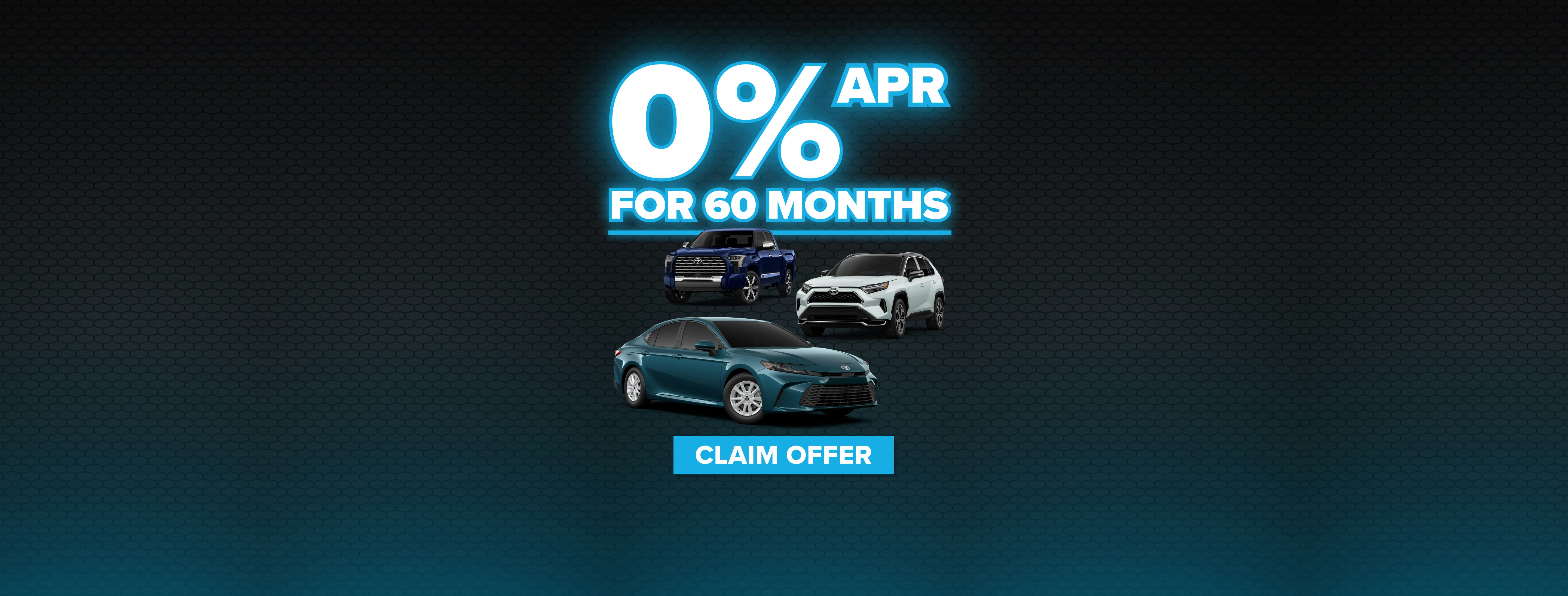 OFFER DOES NOT INCLUDE TITLE, TAX, TAGS, SECURITY DEPOSIT, ANY DEALER INSTALLED ACCESSORIES WHERE APPLICABLE, AND $999 PROCESSING FEE. OFFER AVAILABLE ON APPROVED CREDIT THROUGH DEALER SOURCE FOR VERY WELL QUALIFIED CUSTOMERS. TFS FINANCING, WITH APPROVED CREDIT. 0% APR FOR A 60-MONTH TERM WITH A MINIMUM OF 30% CASH DOWN. PRO TRIM LEVELS DO NOT QUALIFY. TERMS SUBJECT TO VEHICLE AVAILABILITY. CANNOT BE COMBINED WITH OTHER OFFERS UNLESS SPECIFIED OTHERWISE. SEE DEALER FOR DETAILS. OFFER EXPIRES 12/01/25.