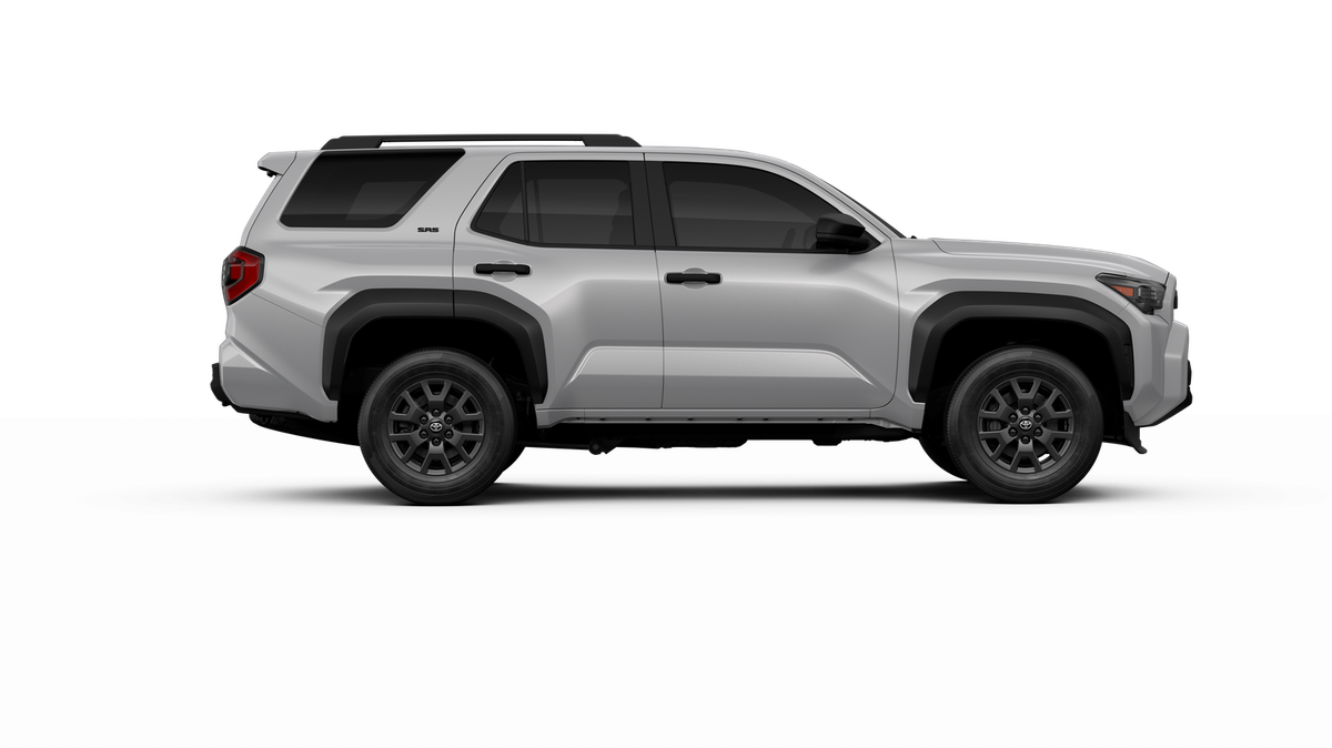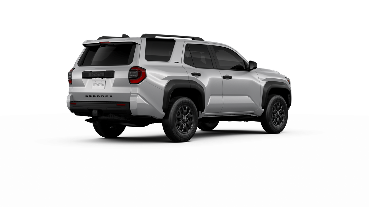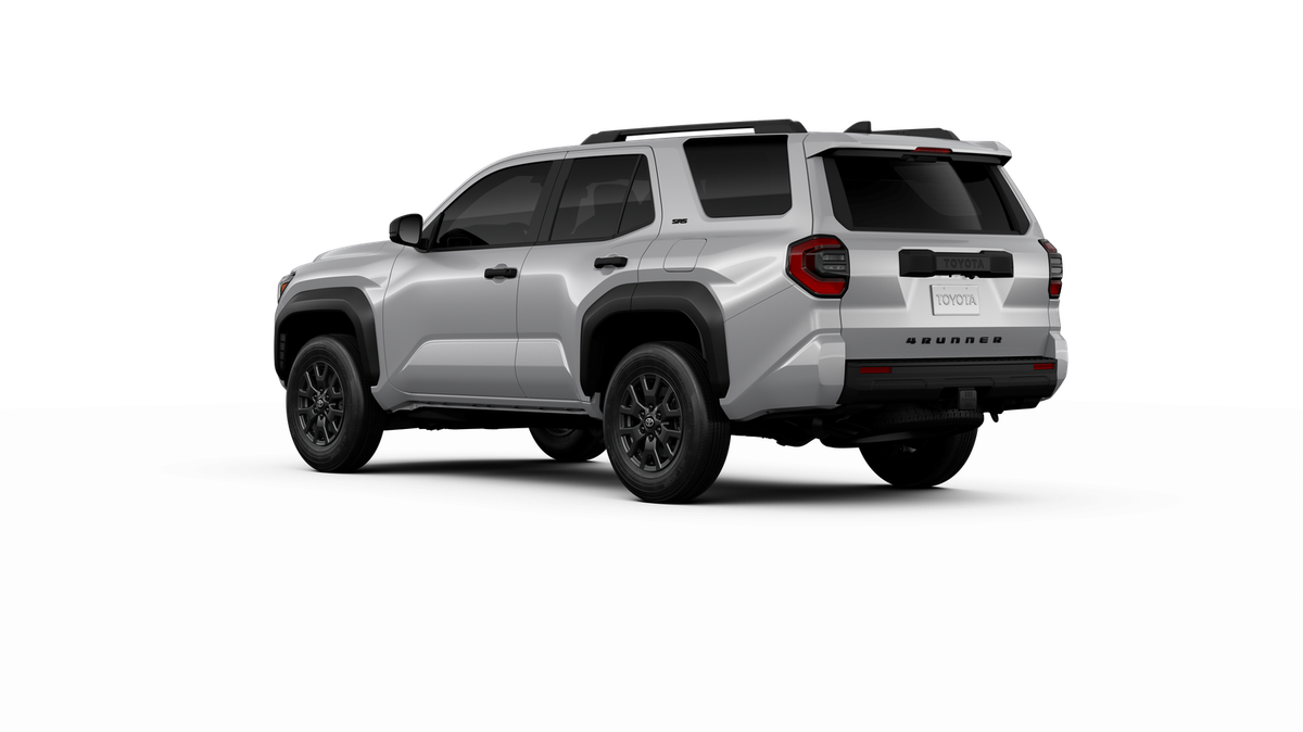 - Black horizontal-bar grille, mirror caps, door handles, and overfenders; color-keyed rear spoiler; black "SR5" and "4RUNNER" badges