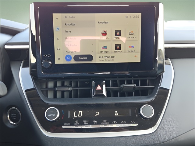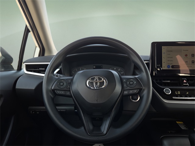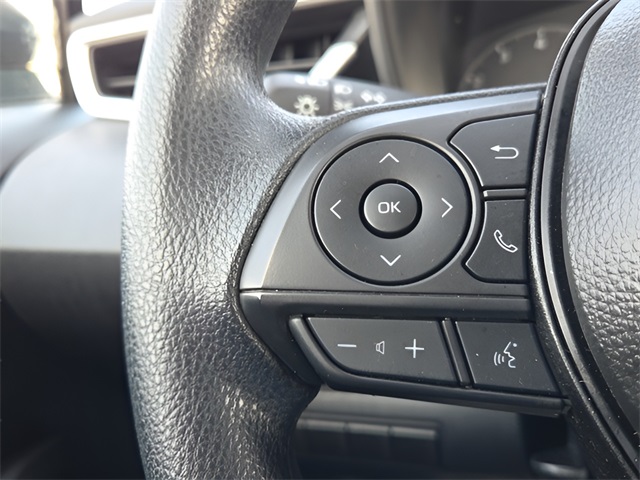 Vehicle Options: 4-Wheel Disc Brakes, 6 Speakers, ABS brakes, Air Conditioning, AM/FM radio: SiriusXM, Apple CarPlay/Android Auto, Auto High-beam Headlights, Automatic temperature control, Brake assist, Bumpers: body-color, Delay-off headlights, Driver door bin, Driver vanity mirror, Dual front impact airbags, Dual front side impact airbags, Electronic Stability Control, Emergency communication system: Safety Connect (up to 10-year trial subscription), Exterior Parking Camera Rear, Fabric Seat Trim, Front anti-roll bar, Front Bucket Seats, Front Center Armrest, Front reading lights, Front wheel independent suspension, Fully automatic headlights, Illuminated entry, Knee airbag, Low tire pressure warning, Occupant sensing airbag, Outside temperature display, Overhead airbag, Panic alarm, Passenger door bin, Passenger vanity mirror, Power door mirrors, Power steering, Power windows, Radio data system, Radio: 8" Toyota Audio Multimedia, Rear anti-roll bar, Rear seat center armrest, Rear side impact airbag, Rear window defroster, Remote keyless entry, Speed control, Split folding rear seat, Steering wheel mounted audio controls, Tachometer, Telescoping steering wheel, Tilt steering wheel, Traction control, Trip computer, and Wheels: 16" Steel with Covers.