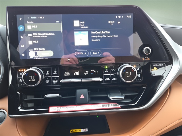 Vehicle Options: 11 Speakers, 20" Alloy Wheels, 3rd row seats: split-bench, 4-Wheel Disc Brakes, ABS brakes, Air Conditioning, Alloy wheels, AM/FM radio: SiriusXM, Apple CarPlay/Android Auto, Auto High-beam Headlights, Auto-dimming Rear-View mirror, Automatic temperature control, Brake assist, Bumpers: body-color, Delay-off headlights, Driver door bin, Driver vanity mirror, Dual front impact airbags, Dual front side impact airbags, Electronic Inner Mirror, Electronic Stability Control, Emergency communication system: Safety Connect (up to 10-year trial subscription), Exterior Parking Camera Rear, Four wheel independent suspension, Front anti-roll bar, Front Bucket Seats, Front Center Armrest, Front dual zone A/C, Front fog lights, Front reading lights, Fully automatic headlights, Garage door transmitter: HomeLink, Heads-Up Display, Heated and Ventilated Front Bucket Seats, Heated front seats, Heated power door mirrors, Heated rear seats, Heated steering wheel, High Grade LED, Illuminated entry, Knee airbag, Leather Seat Trim, Leather Shift Knob, Leather steering wheel, Low tire pressure warning, Memory seat, Navigation system: Drive Connect Cloud Navigation (1-year trial subscription), Occupant sensing airbag, Outside temperature display, Overhead airbag, Overhead console, Panic alarm, Panoramic Sunroof and Moonroof, Panoramic View Monitor, Passenger door bin, Passenger vanity mirror, Power door mirrors, Power driver seat, Power Liftgate, Power moonroof, Power passenger seat, Power steering, Power windows, Radio: 12.3" Toyota Audio Multimedia with JBL Premium Audio, Rain sensing wipers, Rear air conditioning, Rear anti-roll bar, Rear reading lights, Rear window defroster, Rear window wiper, Reclining 3rd row seat AND STOWABLE, Remote keyless entry, Security system, Speed control, Speed-sensing steering, Split folding rear seat, Spoiler, Steering wheel mounted audio controls, Telescoping steering wheel, Tilt steering wheel, Traction control, Trip computer, Turn signal indicator mirrors, Variably intermittent wipers, and Ventilated front seats.