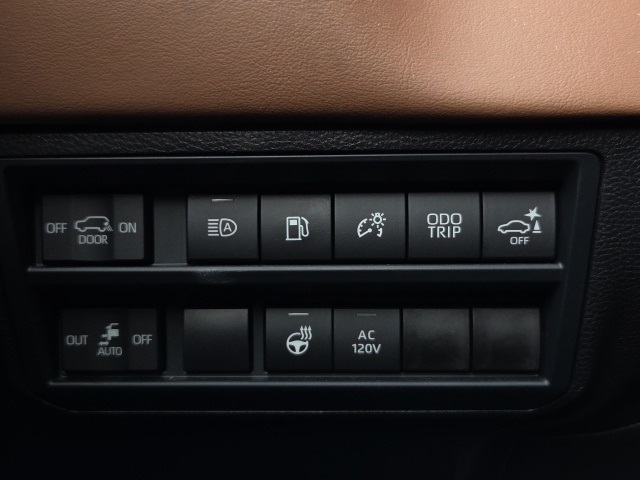 Vehicle Options: 14 Speakers, 20" Alloy Wheels, 3rd row seats: split-bench, 4-Wheel Disc Brakes, ABS brakes, Air Conditioning, Alloy wheels, AM/FM radio: SiriusXM, Anti-whiplash front head restraints, Apple CarPlay/Android Auto, Auto High-beam Headlights, Auto tilt-away steering wheel, Auto-dimming door mirrors, Auto-dimming Rear-View mirror, Automatic temperature control, Brake assist, Bumpers: body-color, Compass, Delay-off headlights, Driver door bin, Driver vanity mirror, Dual front impact airbags, Dual front side impact airbags, Electronic Stability Control, Emergency communication system: Safety Connect (10-year trial), Exterior Parking Camera Rear, Front anti-roll bar, Front Bucket Seats, Front Center Armrest w/Storage, Front dual zone A/C, Front fog lights, Front reading lights, Front wheel independent suspension, Fully automatic headlights, Garage door transmitter: HomeLink, Genuine wood door panel insert, Headlight cleaning, Heated & Ventilated Front Seats, Heated front seats, Heated power door mirrors, Heated rear seats, Heated steering wheel, Illuminated entry, Knee airbag, Leather Shift Knob, Leather steering wheel, Low tire pressure warning, Memory seat, Navigation system: Drive Connect (1 year trial) includes Cloud Navigation with real time traffic and Google POI, Occupant sensing airbag, Outside temperature display, Overhead airbag, Overhead console, Panic alarm, Passenger door bin, Passenger vanity mirror, Power door mirrors, Power driver seat, Power Liftgate, Power moonroof, Power passenger seat, Power steering, Power windows, Premium audio system: JBL, Premium Leather Seat Trim, Radio: 14" Toyota Audio Multimedia w/JBL Prem Aud, Rain sensing wipers, Rear air conditioning, Rear reading lights, Rear seat center armrest, Rear window defroster, Rear window wiper, Reclining 3rd row seat AND STOWABLE, Remote keyless entry, Security system, Speed control, Speed-sensing steering, Split folding rear seat, Spoiler, Sport steering wheel, Steering wheel mounted audio controls, Tachometer, Telescoping steering wheel, Tilt steering wheel, Traction control, Trip computer, Turn signal indicator mirrors, Variably intermittent wipers, Ventilated front seats, Ventilated rear seats, and Voltmeter.