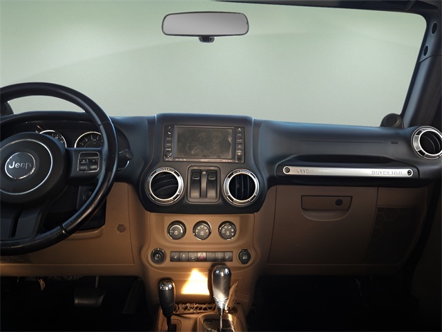 Vehicle Options: Dual Top Group (Black Easy Folding Soft Top, Freedom Panel Storage Bag, Freedom Top 3-Piece Modular Hard Top, Rear Window Defroster, and Rear Window Wiper/Washer), Power Convenience Group (Power Heated Mirrors, Power Locks, Power Windows w/Driver & Front Passenger 1-Touch, Remote Keyless Entry, and Security Alarm), Quick Order Package 24R, 17" x 7.5" Painted Aluminum Wheels, 4-Wheel Disc Brakes, 4.10 Rear Axle Ratio, 6.5" Touch Screen Display, 7 Speakers, ABS brakes, Air Conditioning, Air Conditioning w/Auto Temperature Control, Air Filtering, Alloy wheels, AM/FM radio: SIRIUS, Audio Jack Input for Mobile Devices, Brake assist, CD player, Cloth Bucket Seats, Compass, Deep Tint Sunscreen Windows, Driver door bin, Driver vanity mirror, Dual front impact airbags, Electronic Stability Control, Front anti-roll bar, Front Bucket Seats, Front Center Armrest w/Storage, Front fog lights, Fully automatic headlights, GPS Navigation, Hard Disc Drive, Heated Front Seats, Integrated roll-over protection, Leather steering wheel, Low tire pressure warning, Occupant sensing airbag, Outside temperature display, Passenger door bin, Passenger vanity mirror, Performance Suspension, Power steering, Radio data system, Radio: Media Center 130 CD/MP3, Radio: Media Center 430N CD/DVD/MP3/HDD/NAV (DISC), Rear anti-roll bar, Remote Start System, SIRIUS Travel Link, Speed control, Steering wheel mounted audio controls, Tachometer, Tilt steering wheel, Traction control, Trip computer, and Variably intermittent wipers.