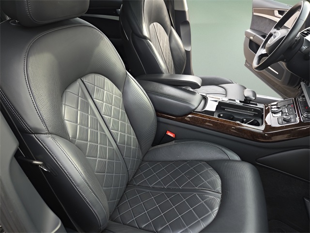 Clean CARFAX. 2012 Audi A8 4.2 quattro Local Trade In, Lifetime Oil & Filer Changes, Premium Sound System, Touch Screen Display, Rear Back-Up Camera, Blind Spot Warning, Power Seat, Dual Power Seats, Heated Seats, Heated/Cooled Seats, Power Moonroof, Navigation, Leather Seating, Multi Zone Climate Control, Rear Air Conditioning, Push Button Ignition, Bluetooth Hands Free Phone System, Steering Wheel Mounted Audio Controls, Power Equipment Pkg, Remote Keyless Entry, Cruise Control, Power Door Mirrors, Aluminum Wheels, Fog Lights, Security System.