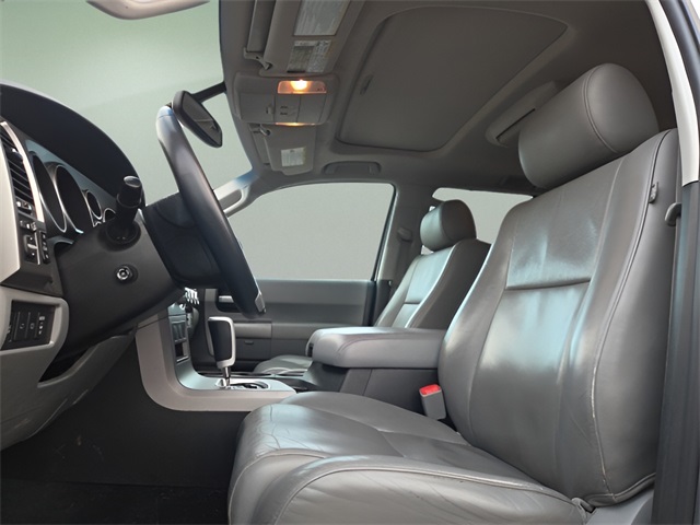 Vehicle Options: 20" x 8" Alloy Wheels, 3rd row seats: split-bench, 4-Wheel Disc Brakes, 4.30 Axle Ratio, 8 Speakers, ABS brakes, Air Conditioning, Alloy wheels, AM/FM radio: SiriusXM, Auto-dimming door mirrors, Automatic temperature control, Brake assist, Bumpers: body-color, CD player, Compass, Delay-off headlights, Driver door bin, Driver vanity mirror, Dual front impact airbags, Dual front side impact airbags, Electronic Stability Control, Exterior Parking Camera Rear, Four wheel independent suspension, Front anti-roll bar, Front Bucket Seats, Front Center Armrest, Front dual zone A/C, Front fog lights, Front Heated Bucket Seats, Front reading lights, Fully automatic headlights, Headlight cleaning, Heated front seats, Heated power door mirrors, Illuminated entry, Knee airbag, Leather Seat Trim, Leather Shift Knob, Leather steering wheel, Low tire pressure warning, Navigation System, Occupant sensing airbag, Outside temperature display, Overhead airbag, Overhead console, Panic alarm, Passenger door bin, Passenger vanity mirror, Power door mirrors, Power driver seat, Power Liftgate, Power moonroof, Power passenger seat, Power steering, Power windows, Radio: Entune Premium Audio with Navigation, Rear air conditioning, Rear anti-roll bar, Rear reading lights, Rear seat center armrest, Rear window defroster, Rear window wiper, Reclining 3rd row seat AND STOWABLE, Remote keyless entry, Roof rack, Security system, Speed control, Speed-sensing steering, Split folding rear seat, Spoiler, Steering wheel mounted audio controls, Sun blinds, Tachometer, Telescoping steering wheel, Tilt steering wheel, Traction control, Trip computer, Turn signal indicator mirrors, Variably intermittent wipers, and Voltmeter.