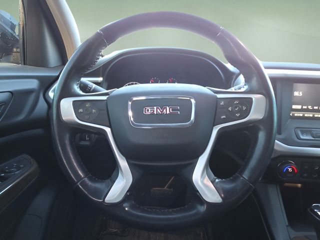 Inside, the Acadia offers a roomy and functional cabin designed for both passengers and cargo. The SLE-1 trim includes modern convenience features such as a touchscreen infotainment system with Bluetooth connectivity, a backup camera, keyless entry, steering wheel-mounted controls, and tri-zone climate control to keep everyone comfortable. The flexible seating and cargo space make it easy to handle road trips, daily errands, or hauling extra gear when needed.