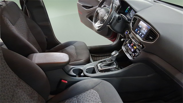 2019 Hyundai Ioniq Hybrid SEL Scarlet Red Pearl with Charcoal Black interior. This sleek 4-door hatchback blends impressive fuel efficiency with modern comfort and technology. Powered by a 1.6L I4 Hybrid engine paired with a smooth 6-Speed EcoShift Dual Clutch transmission, it delivers an exceptionally economical and responsive drive while remaining environmentally friendly (LEV3-SULEV30).