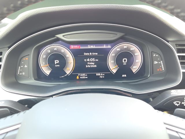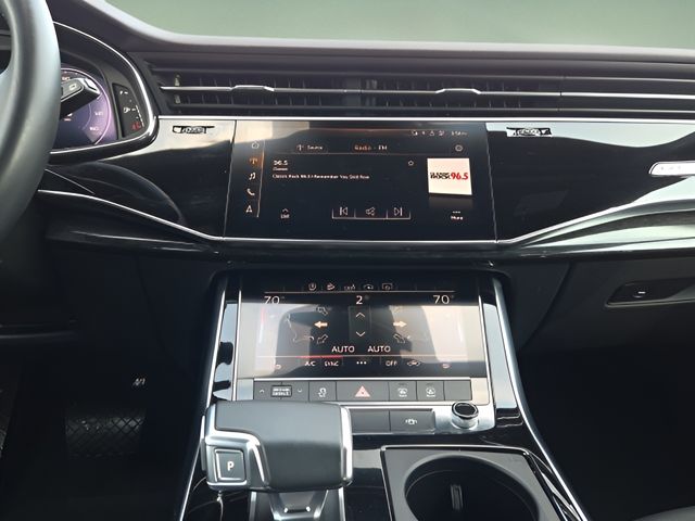 Vehicle Options: 10 Speakers, 3.204 Axle Ratio, 3rd row seats: bench, 4-Wheel Disc Brakes, ABS brakes, Air Conditioning, Alloy wheels, AM/FM radio: SiriusXM, Audi smartphone interface (Apple CarPlay/Android Auto), Auto High-beam Headlights, Auto-dimming Rear-View mirror, Automatic temperature control, Brake assist, Bumpers: body-color, Compass, Delay-off headlights, Driver door bin, Driver vanity mirror, Dual front impact airbags, Dual front side impact airbags, Electronic Stability Control, Emergency communication system: Audi connect CARE, PRIME & PLUS, Exterior Parking Camera Rear, Four wheel independent suspension, Front anti-roll bar, Front Bucket Seats, Front Center Armrest, Front dual zone A/C, Front fog lights, Front reading lights, Fully automatic headlights, Garage door transmitter: HomeLink, Genuine wood door panel insert, Heated Front Bucket Seats, Heated front seats, Heated power door mirrors, Illuminated entry, Leather Seating Surfaces, Leather Shift Knob, Leather steering wheel, Low tire pressure warning, Memory seat, Navigation system: Audi MMI Navigation plus with Touch Response, Occupant sensing airbag, Outside temperature display, Overhead airbag, Overhead console, Panic alarm, Passenger door bin, Passenger vanity mirror, Power door mirrors, Power driver seat, Power Liftgate, Power moonroof, Power passenger seat, Power steering, Power windows, Radio data system, Radio: Audi Sound System, Rain sensing wipers, Rear air conditioning, Rear anti-roll bar, Rear fog lights, Rear reading lights, Rear seat center armrest, Rear window defroster, Rear window wiper, Reclining 3rd row seat AND STOWABLE, Remote keyless entry, Roof rack: Rails Only!, Security system, Speed control, Speed-sensing steering, Split folding rear seat, Spoiler, Steering wheel memory, Steering wheel mounted audio controls, Tachometer, Telescoping steering wheel, Tilt steering wheel, Traction control, Trip computer, Turn signal indicator mirrors, Variably intermittent wipers, and Wheels: 19" 5-Arm Star Design.