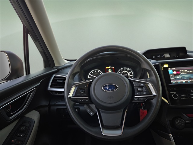 Vehicle Options: Alloy Wheel Package & Roof Rails (Black Finish Roof Rails and Wheels: 17" x 7.0J Silver Finish Aluminum Alloy), 3.70 Axle Ratio, 4 Speakers, 4-Wheel Disc Brakes, ABS brakes, Air Conditioning, AM/FM radio: SiriusXM, Auto High-beam Headlights, Auto-Dimming Mirror w/Compass & HomeLink, Automatic temperature control, Brake assist, Bumpers: body-color, Cargo Cover, Cargo Tray, CD player, Cloth Upholstery, Driver door bin, Driver vanity mirror, Dual front impact airbags, Dual front side impact airbags, Electronic Stability Control, Exterior Parking Camera Rear, Four wheel independent suspension, Front anti-roll bar, Front Bucket Seats, Front Center Armrest, Front reading lights, Fully automatic headlights, Illuminated entry, Knee airbag, Low tire pressure warning, Occupant sensing airbag, Outside temperature display, Overhead airbag, Overhead console, Panic alarm, Passenger door bin, Passenger vanity mirror, Power door mirrors, Power steering, Power windows, Radio data system, Radio: Subaru Starlink 6.5" Multimedia Plus System, Rear anti-roll bar, Rear window defroster, Rear window wiper, Remote keyless entry, Security system, Speed control, Speed-sensing steering, Split folding rear seat, STARLINK/Apple CarPlay/Android Auto, Steering wheel mounted audio controls, Tachometer, Telescoping steering wheel, Tilt steering wheel, Traction control, Trip computer, Variably intermittent wipers, and Wheels: 17" x 7.0J Steel w/Full Wheel Cover.