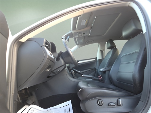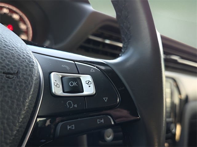 Vehicle Options: 4-Wheel Disc Brakes, 6 Speakers, ABS brakes, Active Blind Spot Monitor, Air Conditioning, Alloy wheels, AM/FM radio: SiriusXM, Auto-dimming Rear-View mirror, Automatic temperature control, Brake assist, Bumpers: body-color, Delay-off headlights, Driver door bin, Driver vanity mirror, Dual front impact airbags, Dual front side impact airbags, Electronic Stability Control, Emergency communication system: VW Car-Net services (capabilities require enrollment or subscription), Exterior Parking Camera Rear, Four wheel independent suspension, Frameless Auto-Dimming Rearview Mirror, Front anti-roll bar, Front Bucket Seats, Front Center Armrest, Front dual zone A/C, Front reading lights, Fully automatic headlights, Heated Front Comfort Seats, Heated front seats, Heated power door mirrors, Illuminated entry, Leather Shift Knob, Leather steering wheel, Low tire pressure warning, Monster Mats Rubber Mats Kit (Set of 4), Occupant sensing airbag, Outside temperature display, Overhead airbag, Overhead console, Panic alarm, Passenger door bin, Passenger vanity mirror, Perforated V-Tex Leatherette Seating Surfaces, Power door mirrors, Power driver seat, Power moonroof, Power steering, Power windows, Radio data system, Radio: Composition Media w/Touchscreen, Rain sensing wipers, Rear anti-roll bar, Rear reading lights, Rear seat center armrest, Rear window defroster, Remote keyless entry, Speed control, Speed-sensing steering, Split folding rear seat, Steering wheel mounted audio controls, Tachometer, Telescoping steering wheel, Tilt steering wheel, Traction control, Trip computer, Turn signal indicator mirrors, Variably intermittent wipers, and Wheels: 18" x 8J 5-Spoke 2-Tone Machined Alloy.