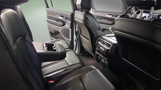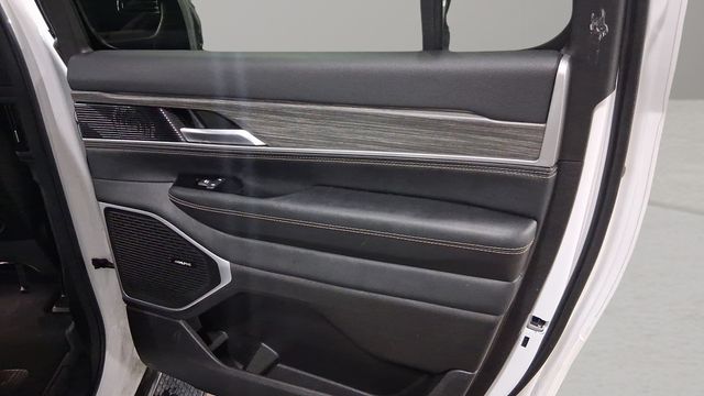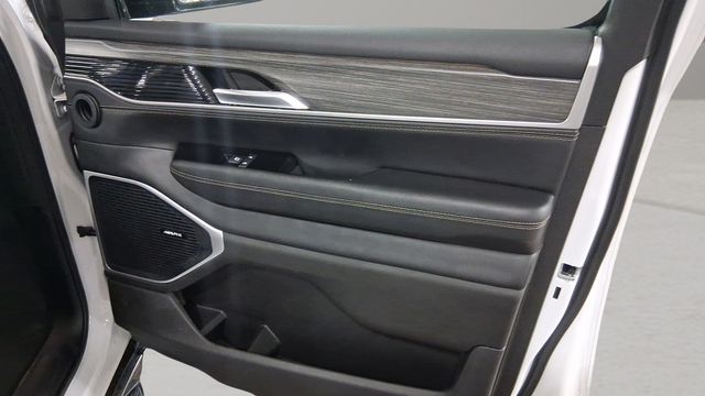 3rd row seats: bench, 40/20/40 2nd Row Bench Power Tip/Slide, 8-Passenger Seating, ABS brakes, Auto-leveling suspension, Automatic temperature control, Delay-off headlights, Electronic Stability Control, Emergency communication system: Wagoneer Connect, Exterior Parking Camera Rear, Flexible Seating Group, Four wheel independent suspension, Front dual zone A/C, Front fog lights, Full Length Floor Console, Fully automatic headlights, Navigation System, Pedal memory, Power adjustable front head restraints, Power driver seat, Power Liftgate, Quick Order Package 25J, Radio: Uconnect 5 Nav w/10.1" Display, Rain sensing wipers, Rear air conditioning, Rear window wiper, Security system, Speed-Sensitive Wipers, Steering wheel mounted audio controls, Traction control, Wheels: 20" x 9.0" Premium 2 Aluminum.