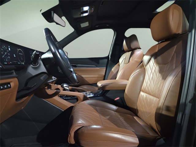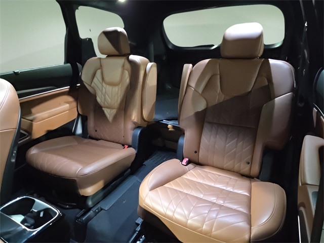 Vehicle Options: Terracotta Interior Color Package, 10 Speakers, 3.648 Axle Ratio, 3rd row seats: split-bench, 4-Wheel Disc Brakes, ABS brakes, Air Conditioning, Alloy wheels, AM/FM radio: SiriusXM, Apple CarPlay & Android Auto, Auto High-beam Headlights, Auto-dimming Rear-View mirror, Auto-leveling suspension, Automatic temperature control, Brake assist, Bumpers: body-color, Carpet Floor Mats, Compass, Delay-off headlights, Driver door bin, Driver vanity mirror, Dual front impact airbags, Dual front side impact airbags, Electronic Stability Control, Emergency communication system: 911 Connect, Exterior Parking Camera Rear, Four wheel independent suspension, Front anti-roll bar, Front Bucket Seats, Front Center Armrest, Front dual zone A/C, Front fog lights, Front reading lights, Fully automatic headlights, Garage door transmitter: HomeLink, harman/kardon® Speakers, Heads-Up Display, Heated & Ventilated Front Bucket Seats, Heated front seats, Heated power door mirrors, Heated rear seats, Heated steering wheel, Illuminated entry, Knee airbag, Leather Shift Knob, Leather steering wheel, Low tire pressure warning, Memory seat, Navigation System, Occupant sensing airbag, Outside temperature display, Overhead airbag, Overhead console, Panic alarm, Passenger door bin, Passenger vanity mirror, Power door mirrors, Power driver seat, Power Liftgate, Power moonroof, Power passenger seat, Power steering, Power windows, Premium Nappa Leather Seat Trim, Radio data system, Radio: AM/FM Harman Kardon Audio System, Rain sensing wipers, Rear air conditioning, Rear anti-roll bar, Rear audio controls, Rear reading lights, Rear side impact airbag, Rear window defroster, Rear window wiper, Reclining 3rd row seat AND STOWABLE, Remote keyless entry, Roof rack: Rails Only!, Security system, Smart Key w/ Push Button and Remote Start, Speed control, Speed-sensing steering, Split folding rear seat, Spoiler, Steering wheel mounted audio controls, Tachometer, Telescoping steering wheel, Tilt steering wheel, Traction control, Trip computer, Turn signal indicator mirrors, Variably intermittent wipers, Ventilated front seats, Ventilated rear seats, and Wheels: 18" x 7.5" Black Finish X-PRO Exclusive.