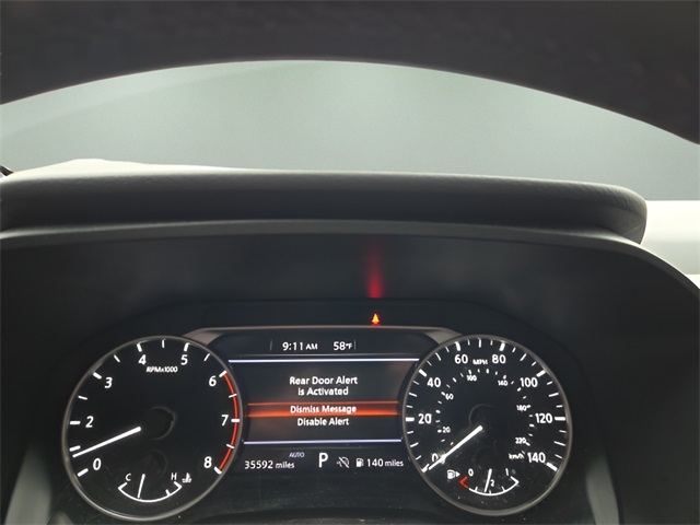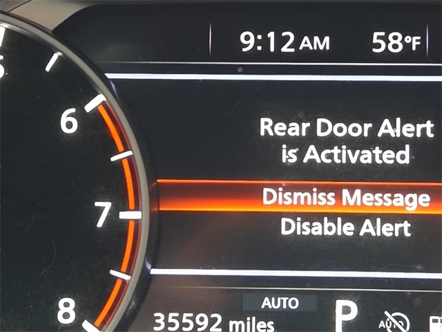 Vehicle Options: SV Premium Package (Heated Front Seats, Heated Leather-Wrapped Steering Wheel, Leatherette Door Trim Inserts w/Stitch, Panoramic Moonroof, Prima-Tex Leatherette Seat Trim w/Perforation, Rear Door Sunshades, Rear Personal Lights, and Silver Painted Roof Rails), 4-Wheel Disc Brakes, 5.676 Axle Ratio, 6 Speakers, ABS brakes, Air Conditioning, Alloy wheels, AM/FM radio: SiriusXM, Auto High-beam Headlights, Automatic temperature control, Black Splash Guards (Set of 4), Brake assist, Bumpers: body-color, Chrome Rear Bumper Protector, Cloth Seat Trim w/Patterned Inserts, Delay-off headlights, Driver door bin, Driver vanity mirror, Dual front impact airbags, Dual front side impact airbags, Electronic Stability Control, Emergency communication system: NissanConnect Services, First Aid Kit, Floor Mats w/1-Piece Cargo Area Protector, Four wheel independent suspension, Front anti-roll bar, Front Bucket Seats, Front Center Armrest, Front dual zone A/C, Front reading lights, Fully automatic headlights, Heated power door mirrors, Illuminated entry, Knee airbag, Low tire pressure warning, NissanConnect featuring Apple CarPlay and Android Auto, Occupant sensing airbag, Outside temperature display, Overhead airbag, Overhead console, Panic alarm, Passenger door bin, Passenger vanity mirror, Power door mirrors, Power driver seat, Power Liftgate, Power steering, Power windows, Radio data system, Radio: AM/FM NissanConnect, Rear anti-roll bar, Rear Parking Sensors, Rear seat center armrest, Rear side impact airbag, Rear window defroster, Rear window wiper, Remote keyless entry, Speed control, Speed-Sensitive Wipers, Split folding rear seat, Spoiler, Steering wheel mounted audio controls, Tachometer, Telescoping steering wheel, Tilt steering wheel, Traction control, Trip computer, Variably intermittent wipers, and Wheels: 18" Dark Painted Machine Finished Alloy.