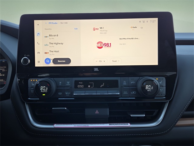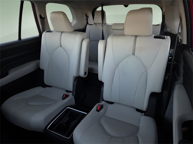 Vehicle Options: ABS brakes, Active Cruise Control, Alloy wheels, Electronic Stability Control, Front dual zone A/C, Heated Front Seats, Heated front seats, Heated power door mirrors, Illuminated entry, Low tire pressure warning, Navigation System, Power Liftgate, Remote keyless entry, Traction control, 18" Aluminum Alloy Wheels, 3.33 Axle Ratio, 3rd row seats: split-bench, 4-Wheel Disc Brakes, 6 Speakers, Air Conditioning, AM/FM radio: SiriusXM, Apple CarPlay/Android Auto, Auto High-beam Headlights, Auto-dimming Rear-View mirror, Automatic temperature control, Brake assist, Bumpers: body-color, Delay-off headlights, Driver door bin, Driver vanity mirror, Dual front impact airbags, Dual front side impact airbags, Emergency communication system: Safety Connect (up to 10-year trial subscription), Exterior Parking Camera Rear, Four wheel independent suspension, Front anti-roll bar, Front Bucket Seats, Front Center Armrest, Front reading lights, Fully automatic headlights, Garage door transmitter: HomeLink, Knee airbag, Leather Shift Knob, Leather steering wheel, Navigation system: Drive Connect Cloud Navigation (1-year trial subscription), Occupant sensing airbag, Outside temperature display, Overhead airbag, Overhead console, Panic alarm, Passenger door bin, Passenger vanity mirror, Power door mirrors, Power driver seat, Power passenger seat, Power steering, Power windows, Radio: 12.3" Toyota Audio Multimedia, Rear air conditioning, Rear anti-roll bar, Rear reading lights, Rear window defroster, Rear window wiper, Reclining 3rd row seat AND STOWABLE, Security system, SofTex Seat Trim, Speed control, Speed-sensing steering, Split folding rear seat, Spoiler, Steering wheel mounted audio controls, Tachometer, Telescoping steering wheel, Tilt steering wheel, Trip computer, Turn signal indicator mirrors, and Variably intermittent wipers.