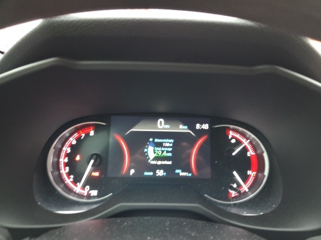 Vehicle Options: 17" Steel Wheels, 4-Wheel Disc Brakes, 6 Speakers, ABS brakes, Air Conditioning, AM/FM radio: SiriusXM, Auto High-beam Headlights, Axle Ratio: 3.177, Brake assist, Bumpers: body-color, Driver door bin, Driver vanity mirror, Dual front impact airbags, Dual front side impact airbags, Electronic Stability Control, Emergency communication system: Safety Connect (10-year trial), Exterior Parking Camera Rear, Fabric Seat Trim, Four wheel independent suspension, Front anti-roll bar, Front Bucket Seats, Front Center Armrest, Front reading lights, Illuminated entry, Knee airbag, Low tire pressure warning, Occupant sensing airbag, Outside temperature display, Overhead airbag, Overhead console, Panic alarm, Passenger door bin, Passenger vanity mirror, Power door mirrors, Power steering, Power windows, Radio data system, Radio: AM/FM/XM Audio System, Rear anti-roll bar, Rear seat center armrest, Rear window defroster, Rear window wiper, Remote keyless entry, Speed control, Speed-sensing steering, Split folding rear seat, Spoiler, Steering wheel mounted audio controls, Tachometer, Telescoping steering wheel, Tilt steering wheel, Traction control, and Trip computer.