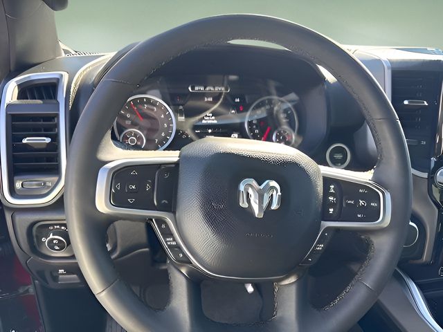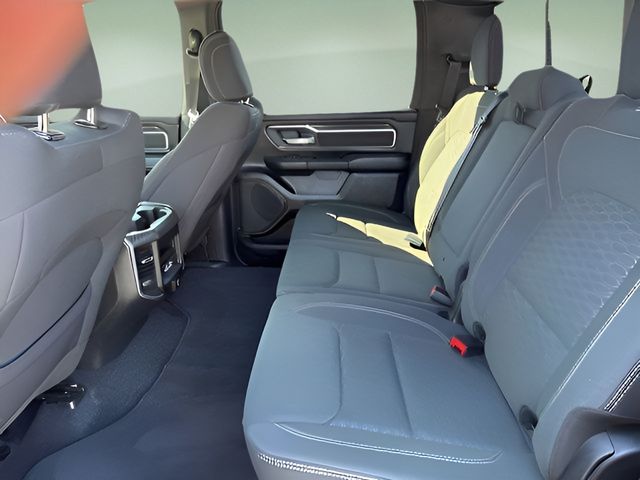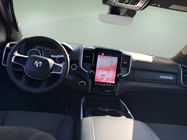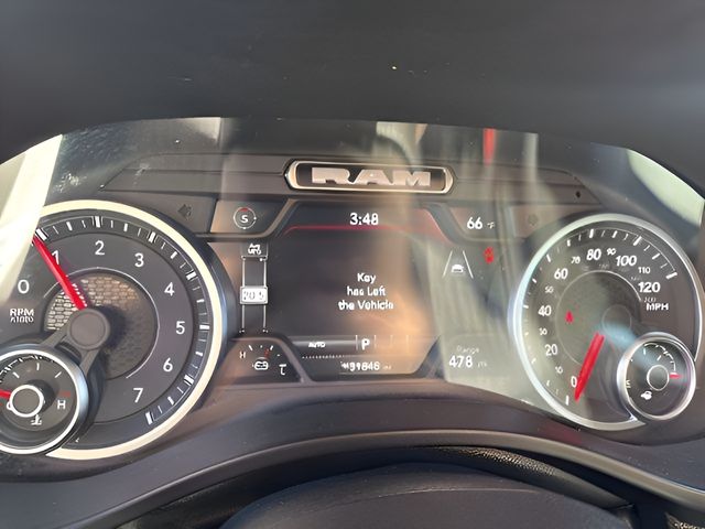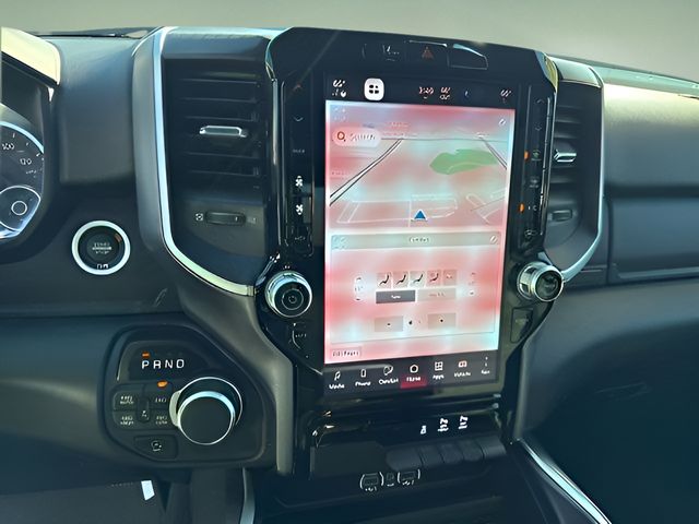 Options Bed Utility Group (Exterior 115V AC Outlet, MOPAR 4 Adjustable Cargo Tie-Down Hooks, MOPAR Spray In Bedliner, and Pick-Up Box Lighting), Big Horn Level 2 Equipment Group (115V Auxiliary Power Outlet, 115V Auxiliary Rear Power Outlet, 12" Touchscreen Display, 2nd Row In Floor Storage Bins, 400W Inverter, 4G LTE Wi-Fi Hot Spot, 9 Amplified Speakers w/Subwoofer, Air Conditioning ATC w/Dual Zone Control, Apple CarPlay, Auto Power-Folding Mirrors, Auto-Dimming Exterior Driver Mirror, Auto-Dimming Rear-View Mirror, Black Exterior Mirrors, Black Premium Power Mirrors, Cluster 7.0" TFT Color Display, Configurable Drive Mode, Connected Travel & Traffic Services, Connectivity - US/Canada, Convex Wide-Angle Exterior Mirror Insert, Exterior Mirrors Courtesy Lamps, Exterior Mirrors w/Heating Element, Exterior Mirrors w/Supplemental Signals, Glove Box Lamp, Google Android Auto, GPS Antenna Input, GPS Navigation, HD Radio, Heated Front Seats, Heated Steering Wheel, Integrated Voice Command w/Bluetooth, Leather Wrapped Steering Wheel, LED Dome Lamp w/On/Off Switch, LED Footwell Lighting, Media Hub w/2 Charge Only USBs, Overhead LED Lamps, Power 2-Way Driver Lumbar Adjust, Power Adjust 8-Way Driver Seat, Power Adjustable Pedals, Premium Overhead Console, Radio: Uconnect 5 Nav w/12.0" Display, Rear Power Sliding Window, Rear Window Defroster, Remote Tailgate Release, Security Alarm, SiriusXM w/360L, Steering Wheel Mounted Audio Controls, Sun Visors w/Illuminated Vanity Mirrors, Universal Garage Door Opener, and USB Host Flip), Quick Order Package 21Z Big Horn, Sport Appearance Package (3 Rear Seat Head Restraints, 4 Way Front Headrests, Black Interior Accents, Body Color Door Handles, Body Color Front Bumper, Body Color Rear Bumper w/Step Pads, Body Color Tailgate Handle, Bucket Seats, Deluxe Cloth Bucket Seats, Front Seat Back Map Pockets, Full Length Floor Console, Grille Surround 1 Body Color Texture 1 Black, Manual Adjust 4-Way Front Passenger Seat, RAM Grille Badge - Chrome, Rear 60/40 Folding Seat, and Rear Center Armrest), 4-Wheel Disc Brakes, 6 Speakers, ABS brakes, Air Conditioning, Alloy wheels, AM/FM radio, Apple CarPlay/Android Auto, Auto High-beam Headlights, Brake assist, Bumpers: chrome, Cloth Bench Seat, Compass, Delay-off headlights, Driver door bin, Dual front impact airbags, Dual front side impact airbags, Electronic Stability Control, Front anti-roll bar, Front Center Armrest w/Storage, Front fog lights, Front License Plate Bracket, Front reading lights, Front wheel independent suspension, Fully automatic headlights, Heated door mirrors, Illuminated entry, Low tire pressure warning, Manual Folding Exterior Mirrors, Occupant sensing airbag, Outside temperature display, Overhead airbag, Overhead console, Panic alarm, ParkView Rear Back-Up Camera, Passenger door bin, Passenger vanity mirror, Power door mirrors, Power steering, Power windows, Radio data system, Radio: Uconnect 5 W w/8.4" Display, Rear anti-roll bar, Rear seat center armrest, Rear step bumper, Remote keyless entry, Speed control, Split folding rear seat, Supplier Part Tracking (J-1), Tachometer, Telescoping steering wheel, Tilt steering wheel, Traction control, Trip computer, Variably intermittent wipers, Voltmeter, and Wheels: 18" x 8" Cast-Aluminum Painted.